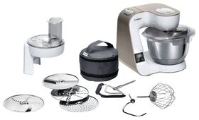 насадка для теста, насадка для взбивания, терка, насадка для нарезки ломтиками, диск для нарезки соломкой, общее число насадок: 7