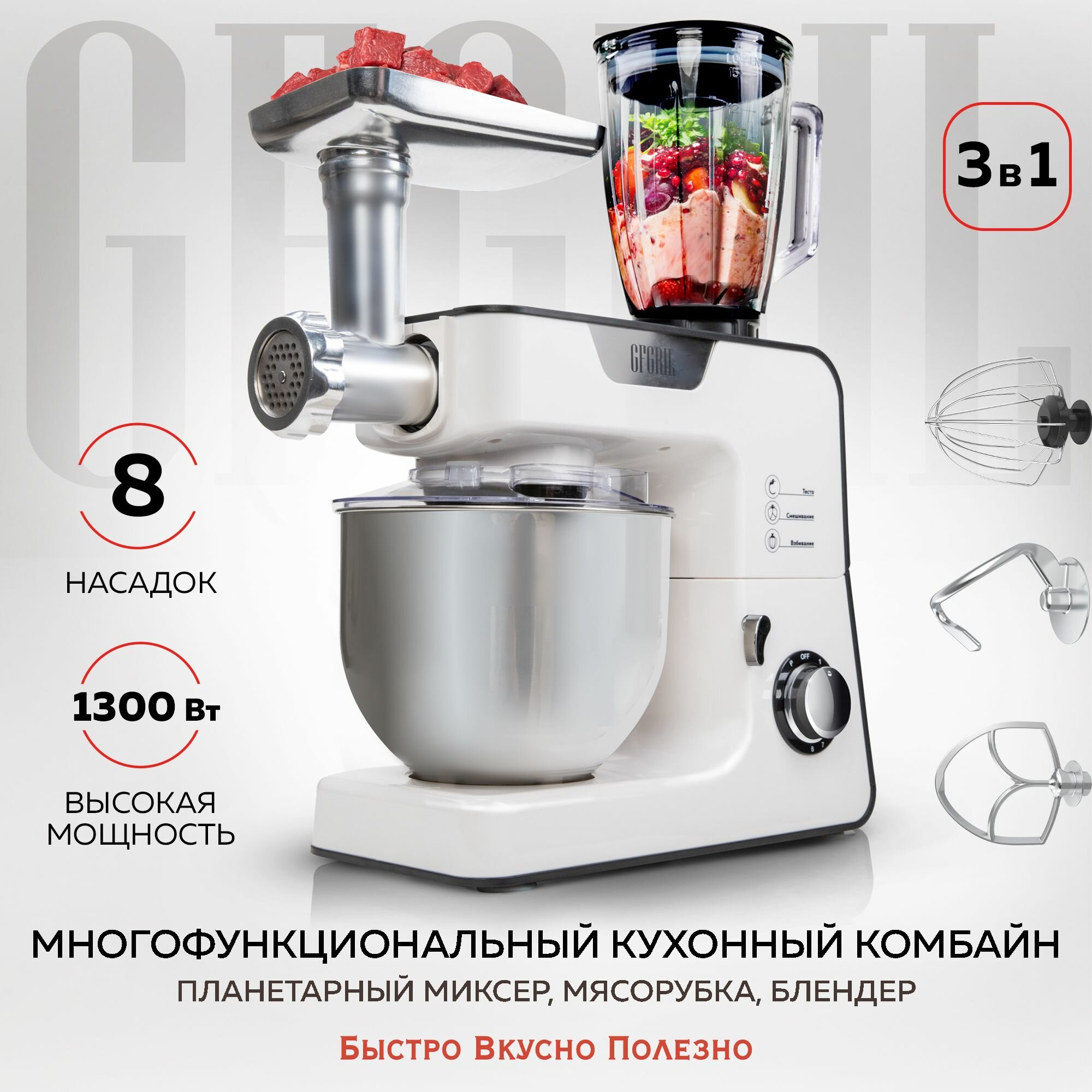 Кухонная машина 3 в 1: планетарный миксер, мясорубка, блендер