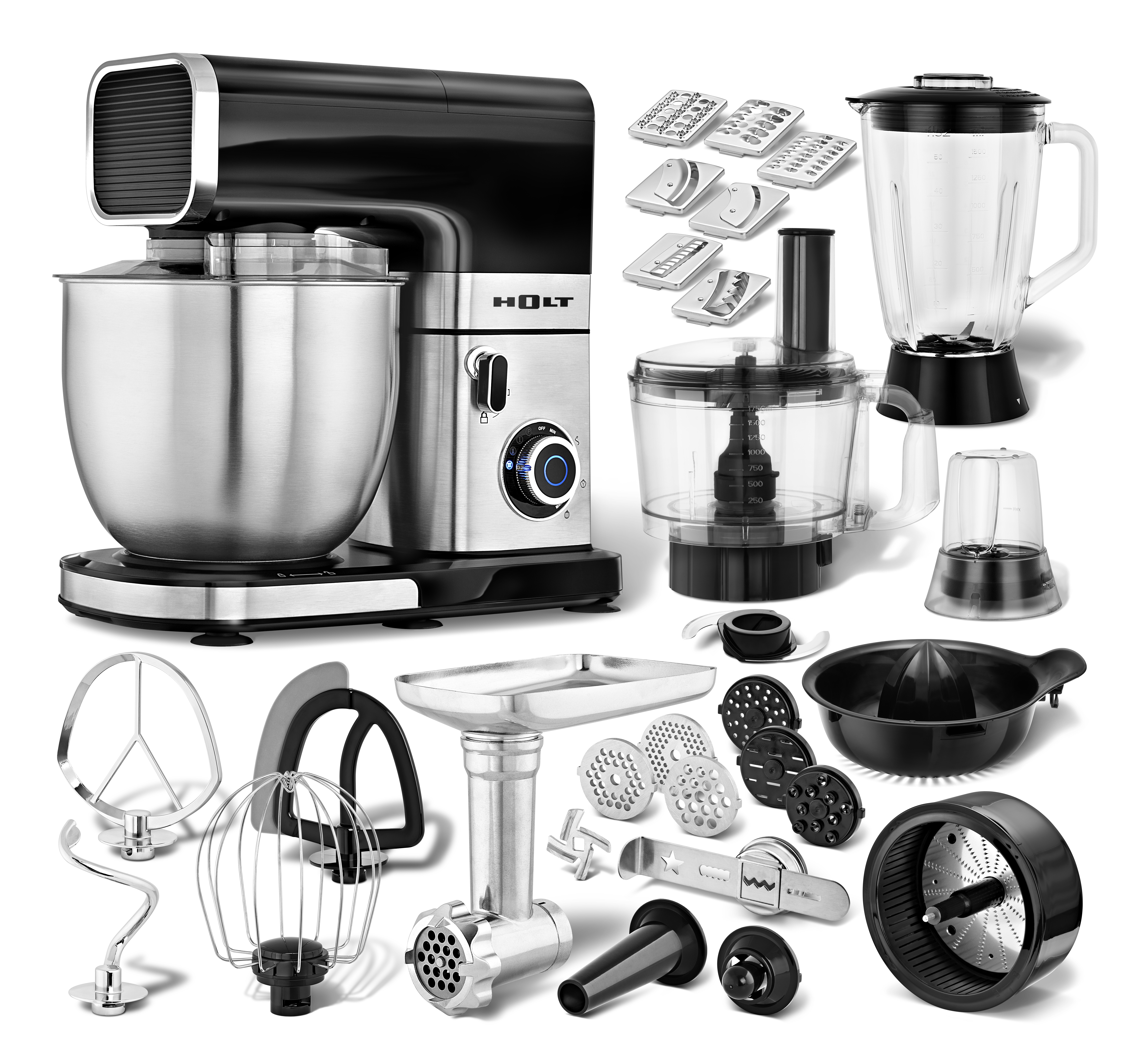Миксер с 4 насадками (для замешивания теста, для взбивания, для смешивания, для смешивания с гибким краем)