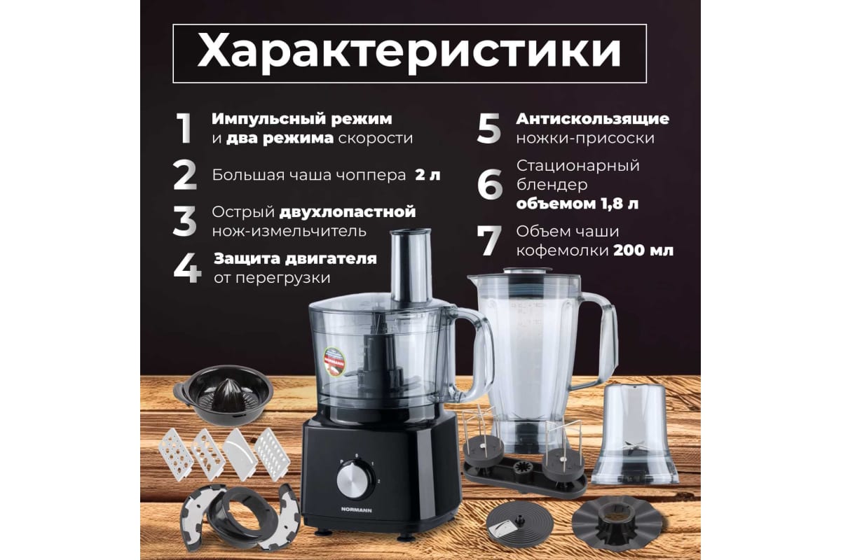 Технические характеристики кухонного комбайна NORMANN AFP-947