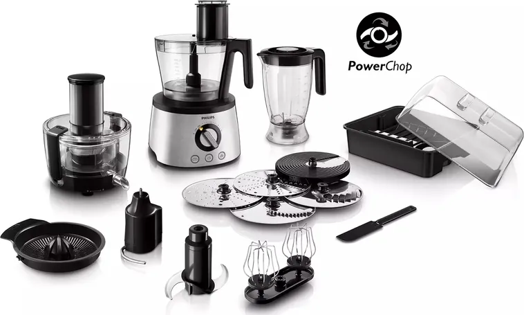 Насадки приборов для измельчения продуктов: Венчик, Лопатка, Для замешивания теста, Ломтерезка, Шинковка, Соковыжималка