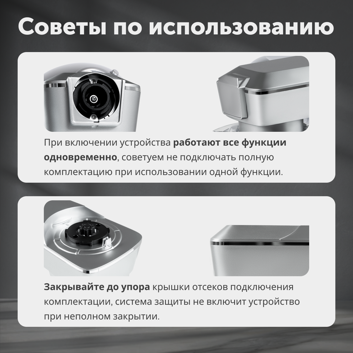 Кухонный комбайн - это многофункциональное устройство, которое поможет сэкономить время и усилия при готовке. Он обладает множеством функций для выполнения различных задач, связанные с обработкой продуктов.