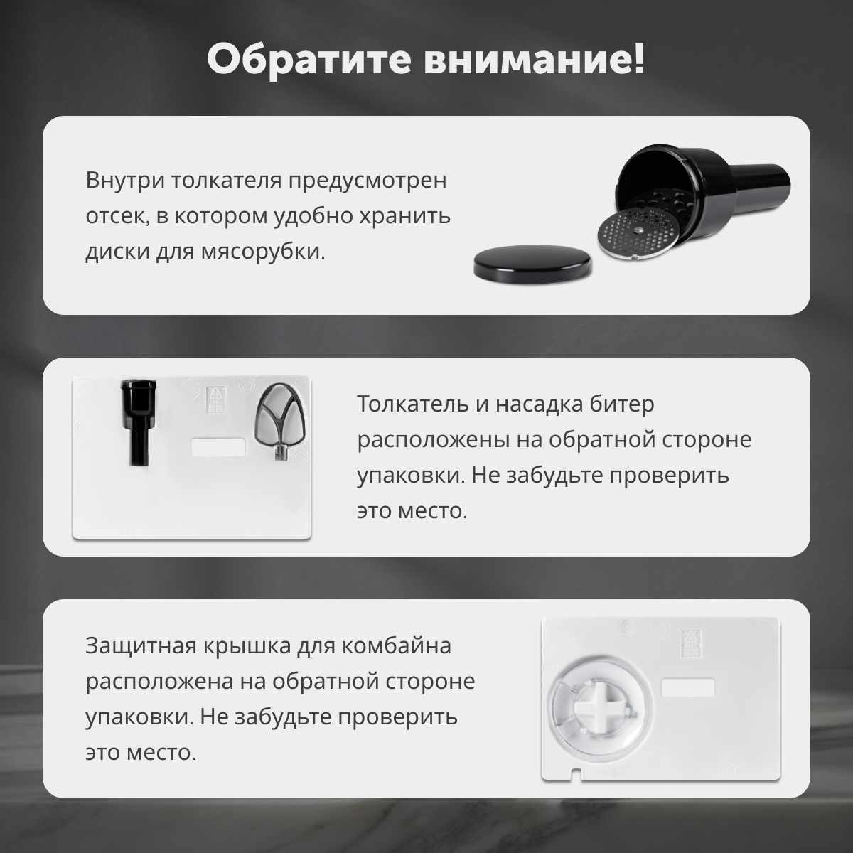 Размеры комбайна (высота с миксером и мясорубкой): 560мм, длина 410мм