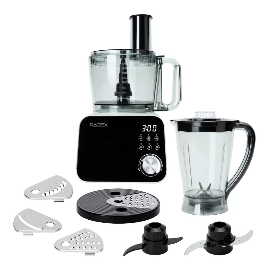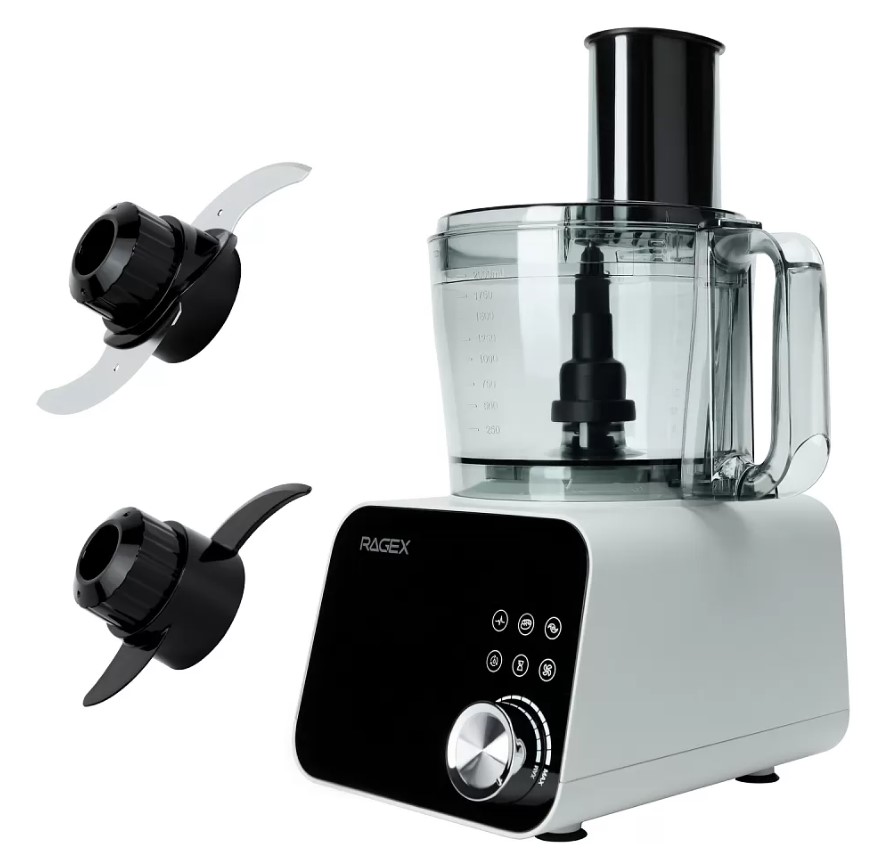 Корпус - нержавеющая сталь; чаша измельчителя - пластик; чаша блендера - пластик; лезвия - нержавеющая сталь; нож для измельчения - нержавеющая сталь; нож для теста - пластик