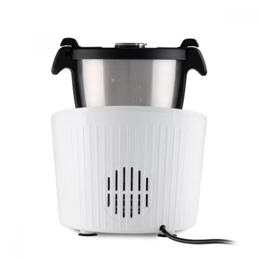 28 функций и режимов работы: Обрабатывает, нарезает, измельчает, эмульгирует, натирает на терке, шинкует, замешивает, перемешивает, взбивает, готовит, обжаривание, поддержание тепла и взвешивание