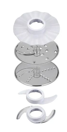 Насадки в комплекте эмульгатор, универсальный нож, кофемолка, диски овощерезки,