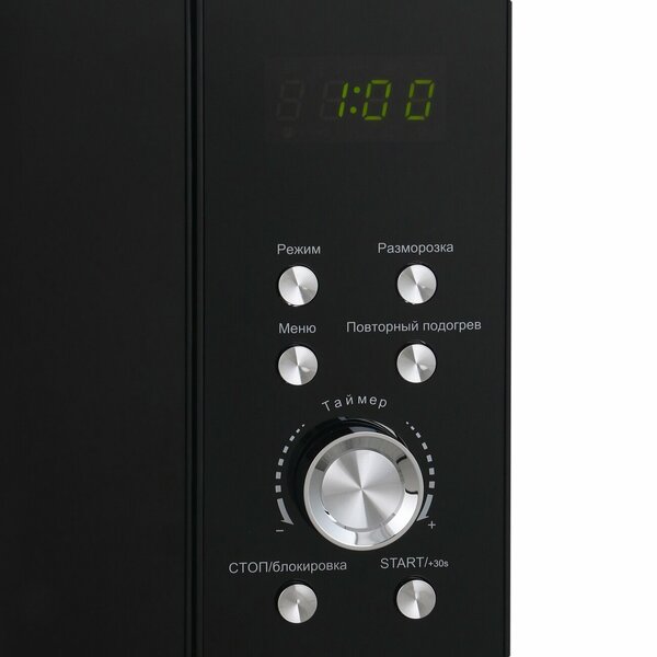 Микроволновая печь Artel ART-MWD2305 в корпусе цвета Black оборудована грилем. В прибор заложены восемь автоматических программ, максимальная мощность микроволн достигает 800 Вт, регулируется на пяти уровнях. Электронная панель управления представлена кнопками и поворотным регулятором. На дисплее отображается информация о работе устройства и время.