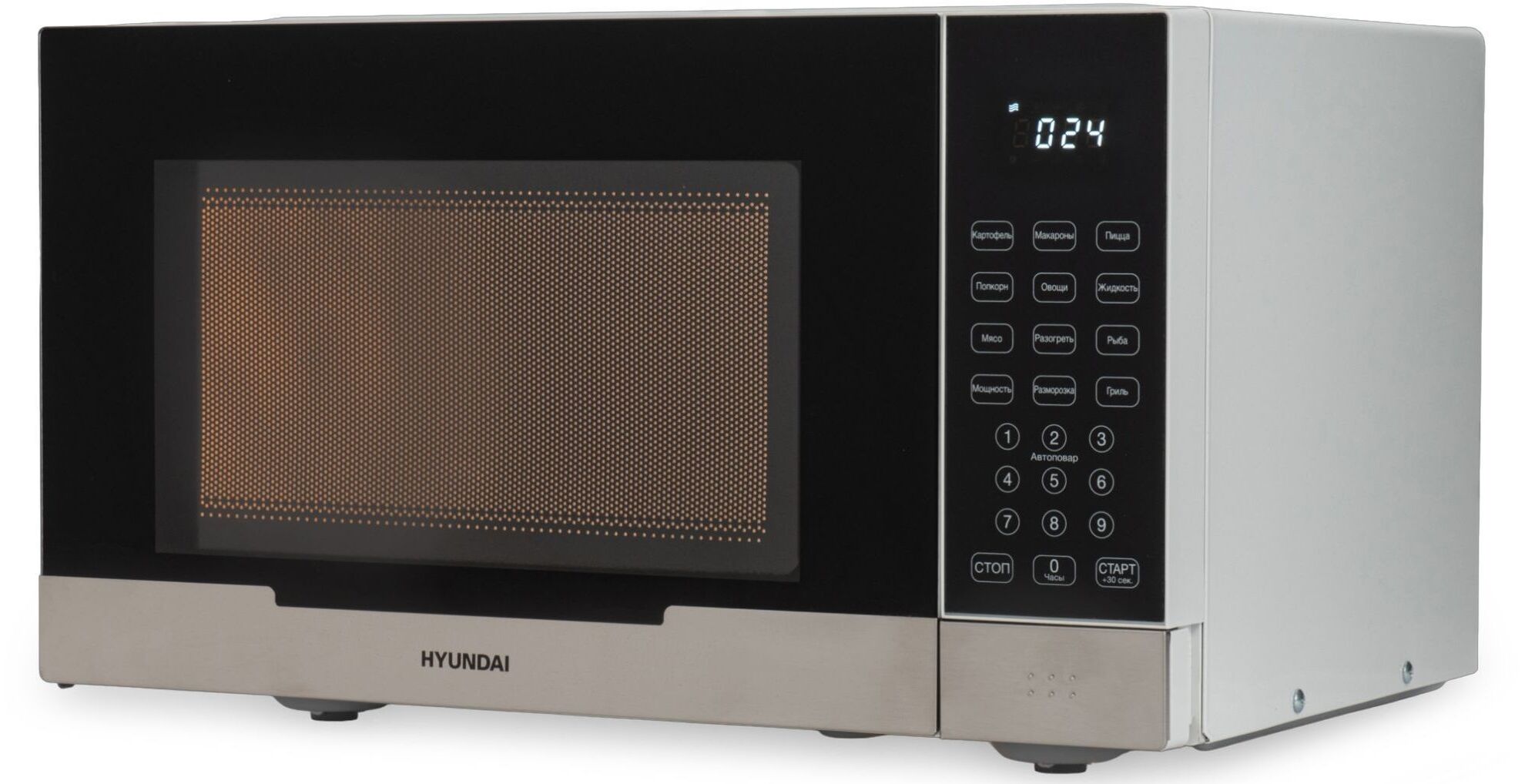 Микроволновая печь с грилем и электронной панелью управления Hyundai HYM-D2075 отлично подойдет не только для разогрева и размораживания продуктов, но и приготовления. Вместительная камера на 23 л позволит готовить сразу несколько порций в один прием, а набор из 8 предустановленных программ – подобрать оптимальные настройки для конкретного блюда.