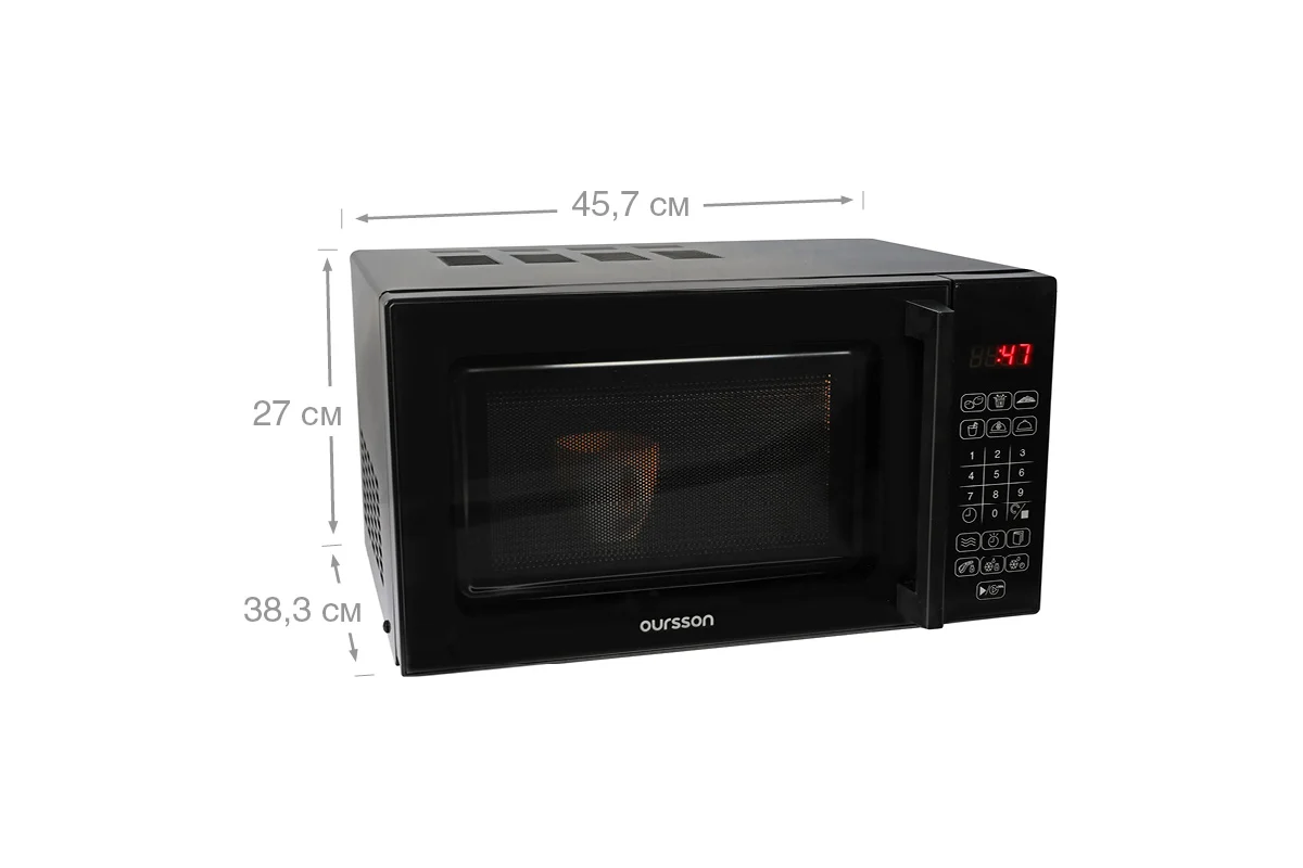 Стильная микроволновая печь MD2043G Oursson имеет современное исполнение без поворотного стола. При компактных внешних габаритах (ШхГхВ) 457x383x271 мм данная модель имеет просторную внутреннюю камеру объёмом 20 литров. Отсутствие выступов и переходов внутри печи делают ее максимально удобной при чистке и эксплуатации - в такое изделие поместится посуда любых размеров. СВЧ-печь мощностью 700 Вт имеет 6 стандартных программ приготовления, 6 уровней мощности, таймер на 60 минут, а также функцию «Разморозка по весу» и «Разморозка по времени». Сенсорная панель управления проста и интуитивно понятна пользователю. Эргономичная ручка, расположенная на фронтальной панели, позволяет легко открыть прибор без его смещения, что дополнительно обеспечивают 4 устойчивых ножки. Эмалевое покрытие внутренней камеры способствует простой чистке прибора. Микроволновая печь снабжена автоотключением при перегреве и перегрузке, а безопасность малышам обеспечивает функция «Защита от детей».