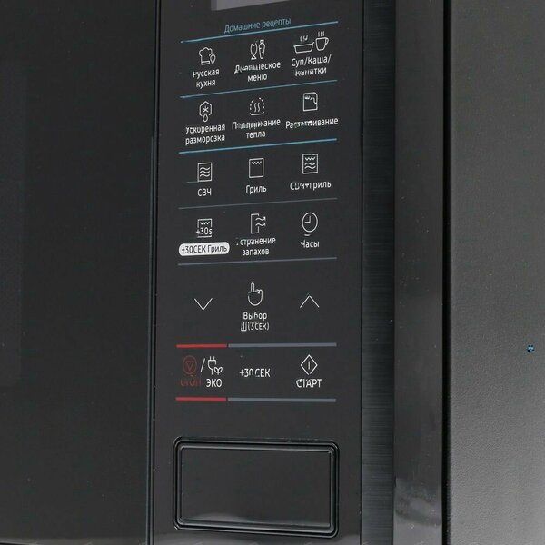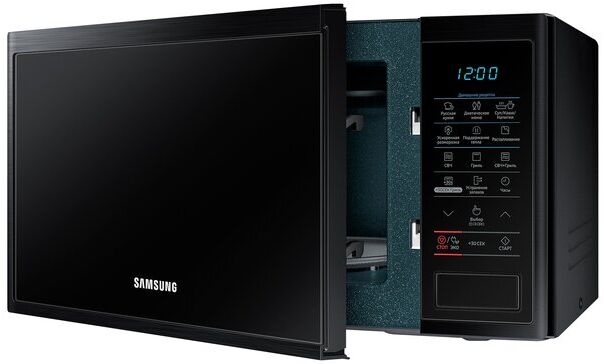 Несомненным достоинством модели Samsung MG23J5133AK/BW является наличие 66 различных программ приготовления. А их выбор значительно облегчит встроенный дисплей и сенсорная панель управления. С функцией гриля у вас появится возможность удивить домочадцев и гостей ароматным мясом и птице с хрустящей равномерной корочкой. Чтобы удобно открыть дверцу микроволновой печи, вам достаточно нажать на соответствующую кнопку в ее основании.