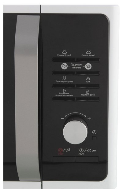 дисплей, подсветка камеры, блокировка от детей, система равномерного распределения микроволн, утапливаемые переключатели