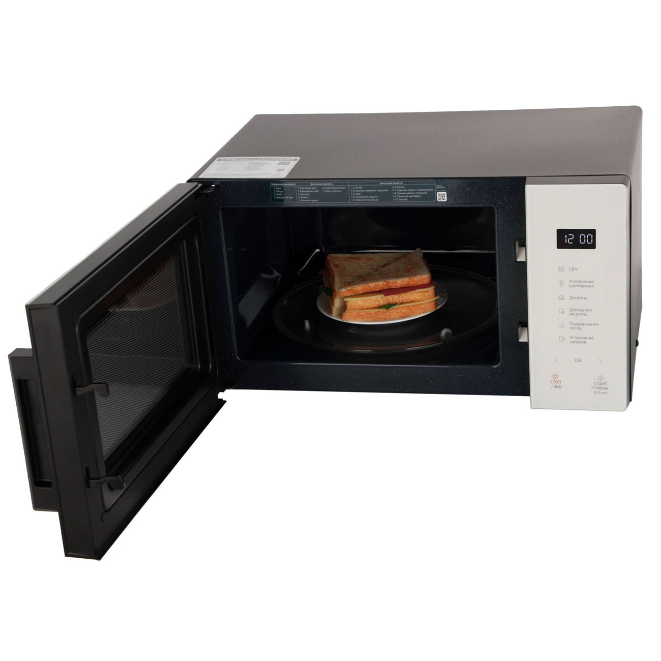 Управляйте микроволновкой интуитивно, используя шесть сенсорных кнопок на панели. Внутри камера изделия имеет биокерамическое покрытие, устойчивое к повреждениям и легко очищаемое. Этот слой сохраняет свой первоначальный вид и свойства в течение долгих лет активного использования.