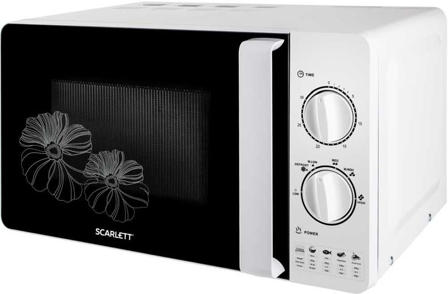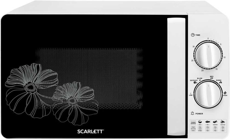 Описание Объем шкафа в двадцать литров делает прибор подходящим для использования в большой семье, а мощность в 700 Вт позволит экономить энергию. Микроволновая печь SCARLETT SC-MW9020S01M легко открывается с помощью ручки и имеет поворотный стол диаметром в 245мм.