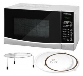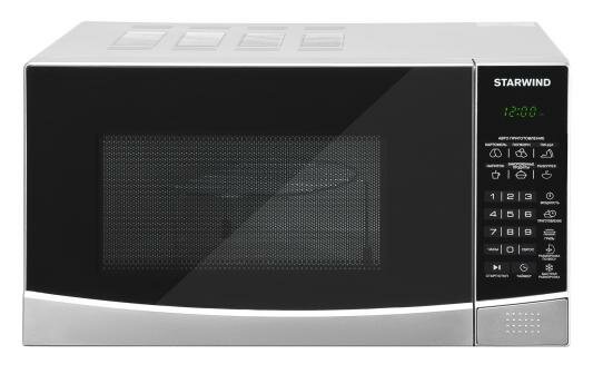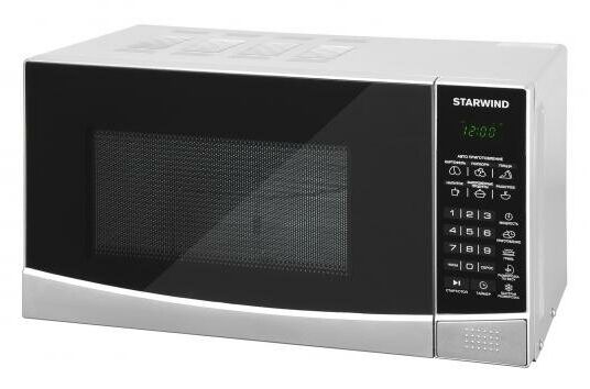 Наименование: Микроволновая печь; Возможность встраивания: нет; Внутренний объём: 20 л; Тип управления: электронное; Отображение информации: цифровой дисплей; Мощность микроволн: 700 Вт; Способ открывания дверцы: "кнопка"; Внутренее покрытие: эмаль; Диаметр поворотного стола (поддона): 24.5 см; Цвет: серебристый, чёрный; Особенности: гриль, автоматическая разморозка, автоматическое приготовление, блокировка от детей, режим разморозки; Прочие особенности и свойства: Стильная, мощная и многофункциональная микроволновая печь STARWIND SMW3120 станет незаменимым помощником на кухне для каждой хозяйки или в офисе. Данная модель выполнена в гармоничном дизайне классической формы. Основные цвета – черный и серебристый. Корпус прибора изготовлен из металла, передняя панель и дверца – из пластика. На верхней части и по бокам предусмотрена перфорация для вывода горячего воздуха, образующегося во время нагрева, что стоит учитывать в момент установки прибора. Открытие дверцы осуществляется с помощью кнопки, что позволяет задействовать всего один палец что актуально, если вы уже держите в руках блюдо, подготовленное для установки в СВЧ STARWIND., Относительно программного обеспечения, то данная печь может все! В ней предусмотрены следующие функции:, • Разогрев;, • Настройка мощности;, • Разморозка;, • Автоприготовление;, • Приготовление (задаются собственные настройки и набор режимов);, • Гриль;, • Быстрая разморозка;, • Таймер;, • Настройка часов., Среди программ имеется:, • Программы автоматического приготовления: картофель, попкорн, пицца;, • Разогрев;, • Замороженные продукты;, • Напитки.; Вес: 11,3