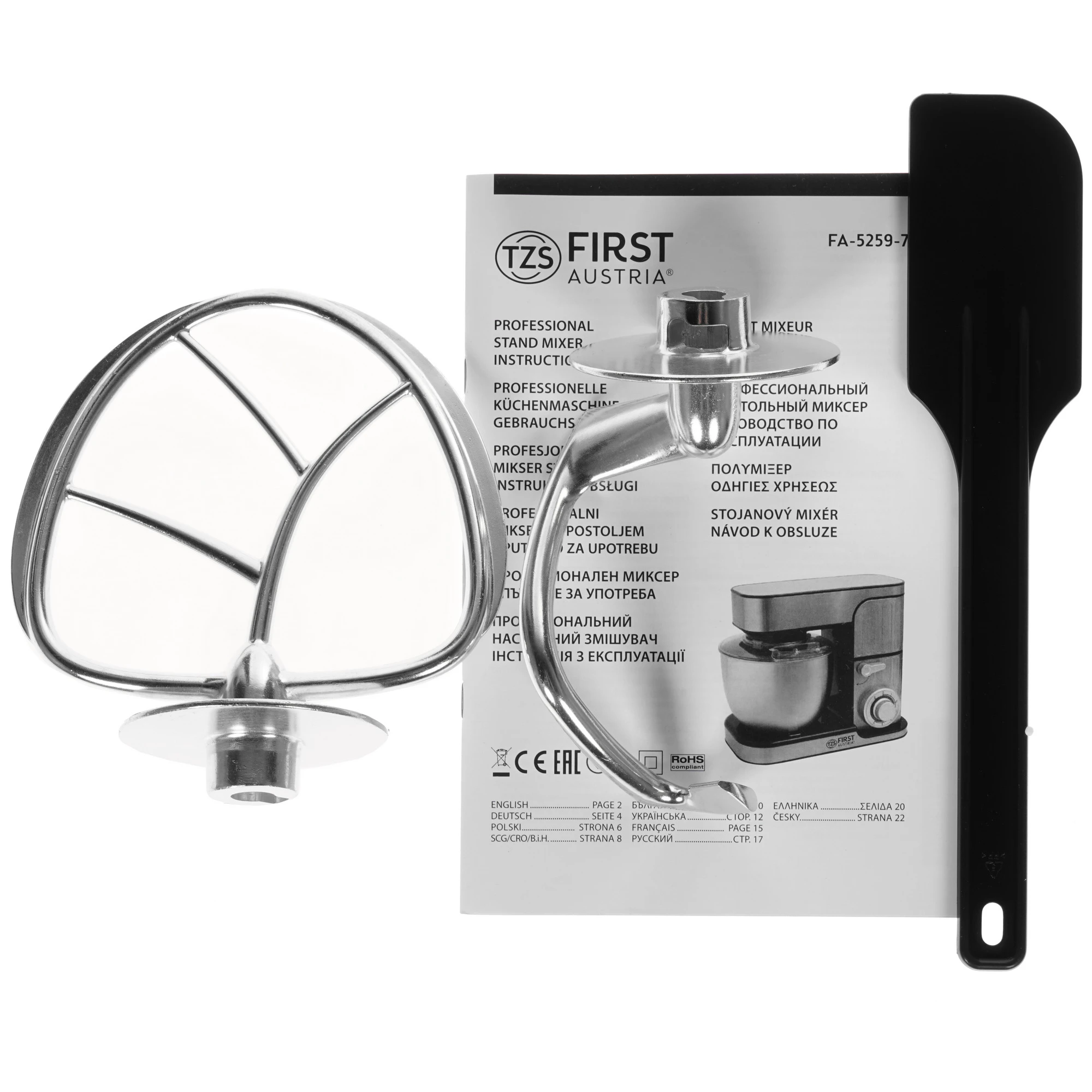 документация, кулинарная лопатка, насадка-венчик, насадка-крюк, насадка для перемешивания, чаша