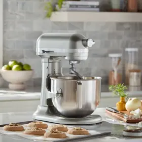 Миксер KitchenAid Heavy Duty 6,6 л (модель 5KSM70JPXECU) — это мощный планетарный миксер, предназначенный для профессионального и домашнего использования. Он оснащен чашей объемом 6,6 литра, которая выполнена из нержавеющей стали, и поддерживает 10 скоростей, что делает его идеальным для замешивания густого теста, взбивания кремов и других задач.