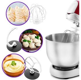 Комплектация насадка-скребок, насадка-венчик, насадка для лапши, сепаратор для яиц, насадка для кеббе, насадка для колбасок, перфорированные решетки (3 шт.), толкатель, защитная крышка, насадка-мясорубка, документация, чаша