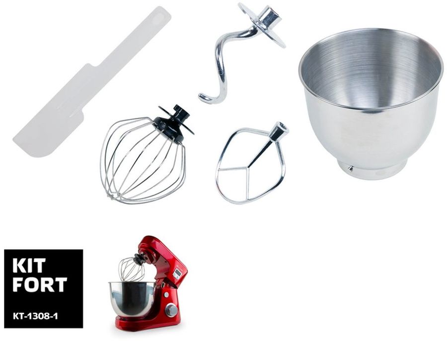 Описание Планетарный стационарный миксер Kitfort КТ-1308 поможет смешать ингредиенты, взбить яичный белок или сливки, приготовить картофельное пюре, соус, крем, мусс, замесить густое и жидкое тесто, а также многое другое.