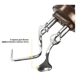- Насадки:венчик для взбивания, крючки для замешивания теста, насадка для приготовления пюре