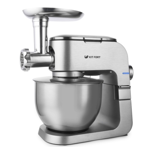 Комплектация защитная крышка, насадка-лопатка, насадка крюк, насадка-венчик, кольцевая гайка, насадка для продавливания теста, перфорированные решетки (3 шт.), толкатель, насадки для колбасы (2 шт.), загрузочный лоток, насадка-мясорубка, документация
