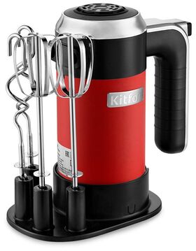 Комплектация: 1. Миксер — 1 шт. 2. Венчик — 2 шт. 3. Крюк — 2 шт. 4. Подставка — 1 шт.