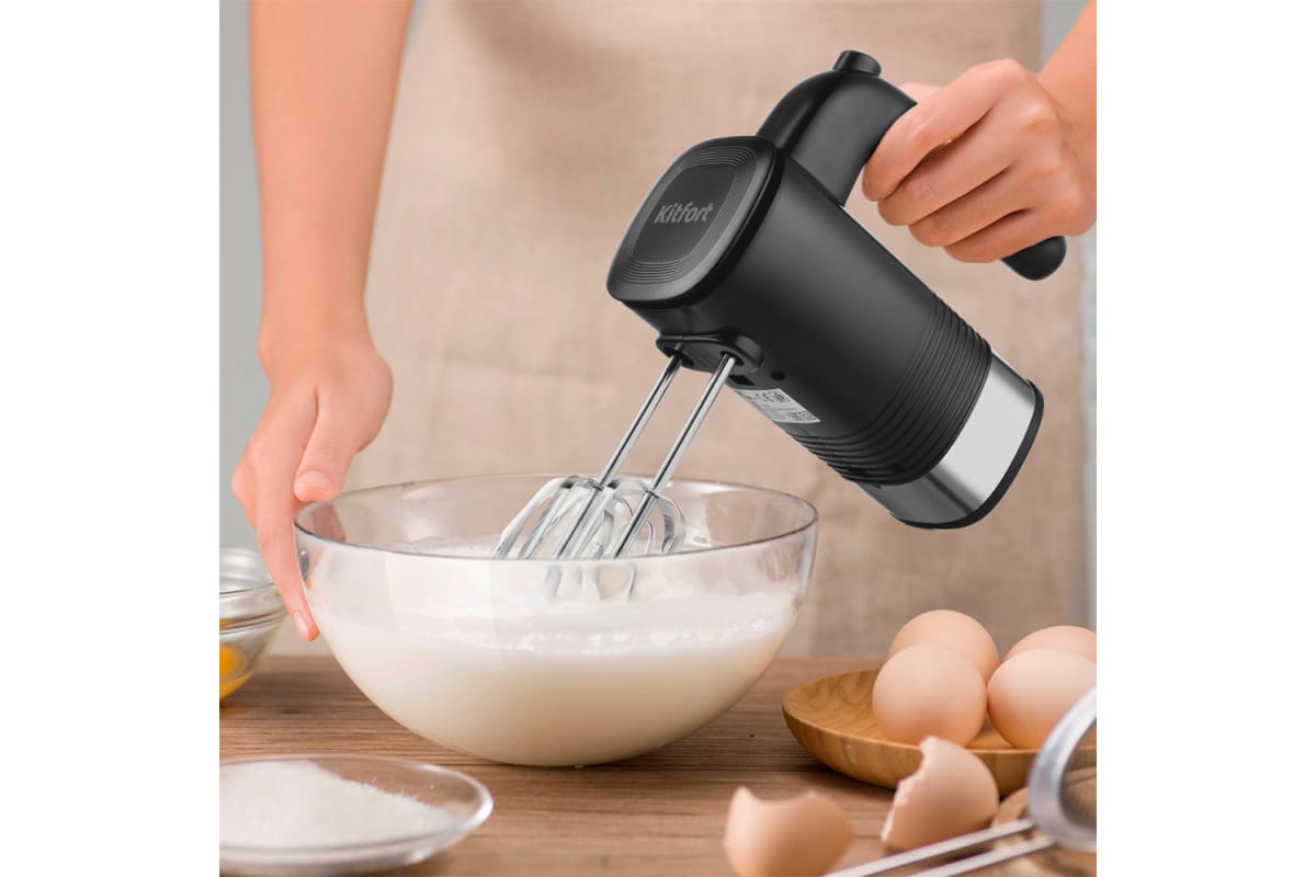 Миксер оснащён тремя видами насадок, благодаря которым вы точно сможете воплотить кулинарные идеи. В комплекте идут насадки для взбивания и замеса, поэтому миксер поможет смешать ингредиенты любой плотности для любимого блюда.