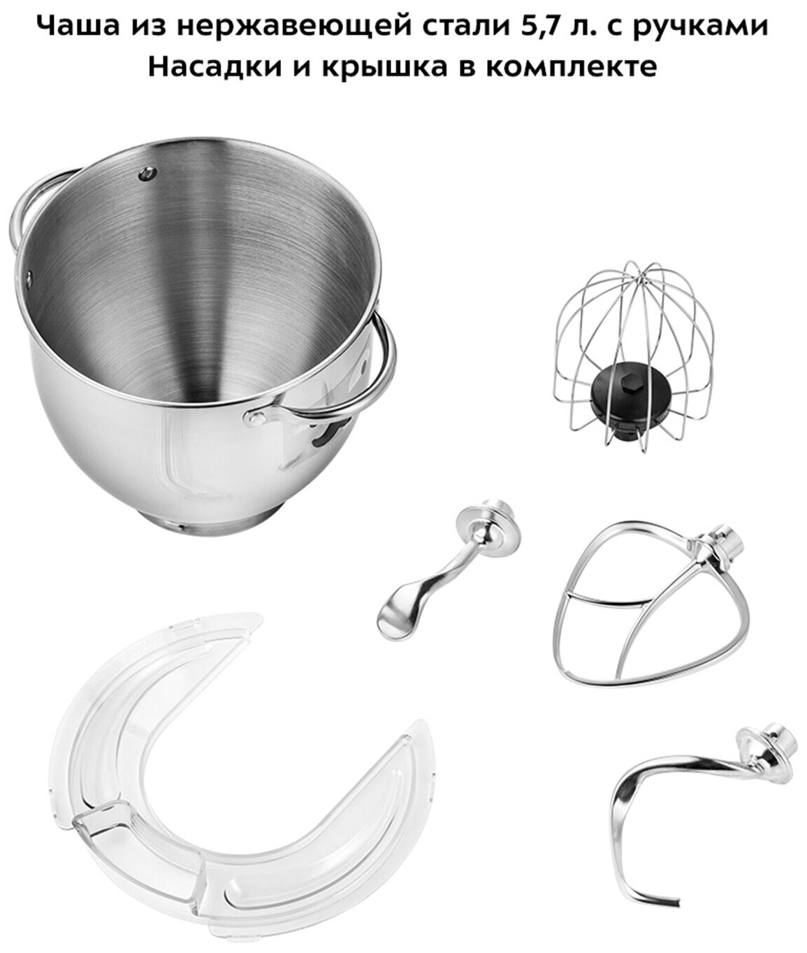 венчик для взбивания, крючки для замешивания теста, насадка для приготовления пюре