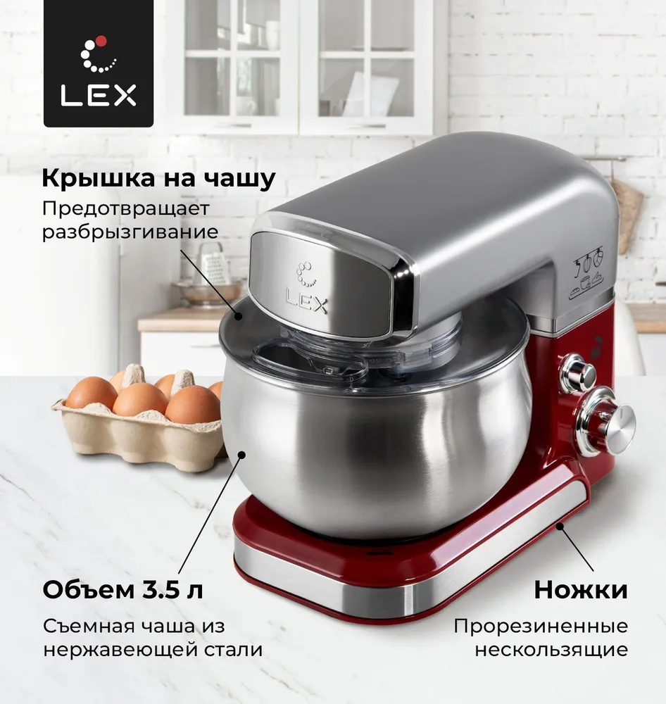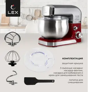 венчик для взбивания, крючки для замешивания теста, лопатка, насадка-блендер, Насадка-миксер
