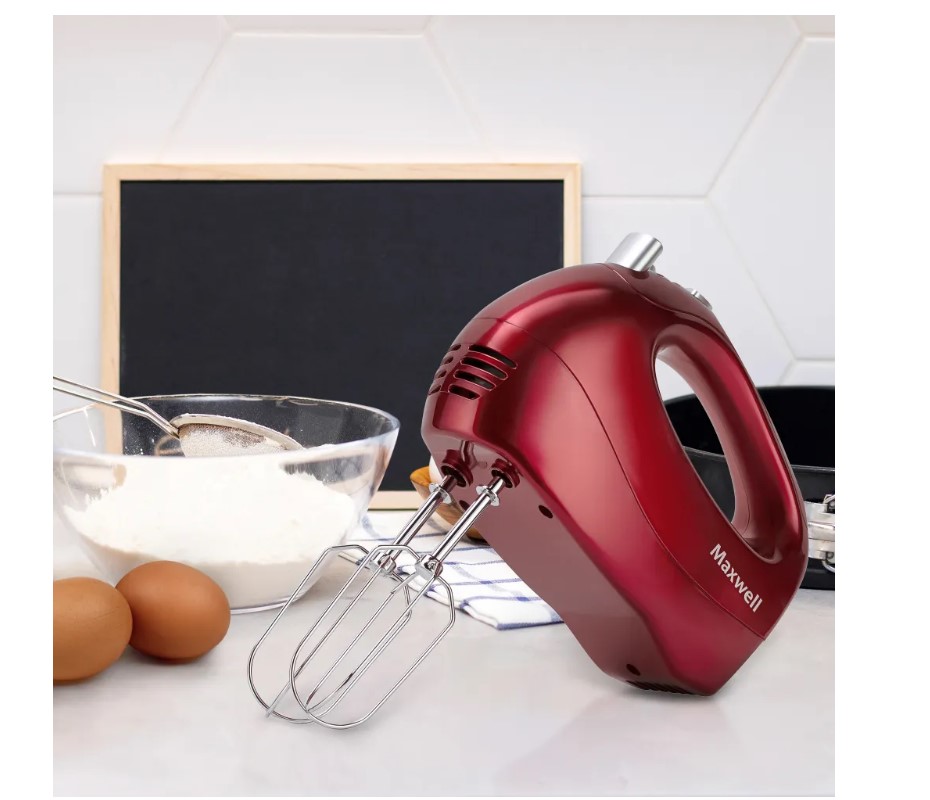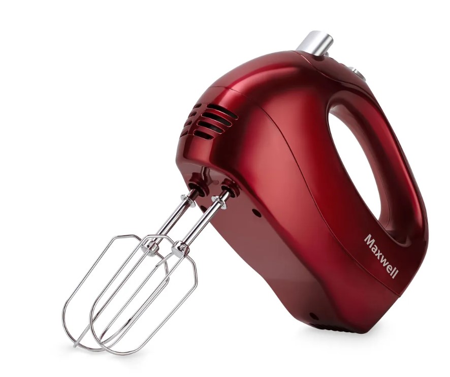Миксер MAXWELL MW-1357 R с максимальной мощностью 300 Вт позволяет взбивать яичные белки, готовить муссы, соусы, кремы, а также идеально вымешивать тесто. Прибор имеет 5 скоростных режимов и режим TURBO, который помогает быстро справиться даже с густой массой. В комплект входят 2 венчика для взбивания и 2 насадки для теста из хромированной стали. Менять насадки очень просто — с помощью легкого нажатия на специальную кнопку.