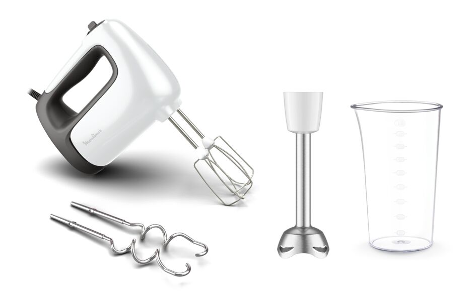 насадка венчики для взбивания - 2 шт; насадка крюки для замешивания теста - 2 шт; руководство по эксплуатации; насадка для смешивания