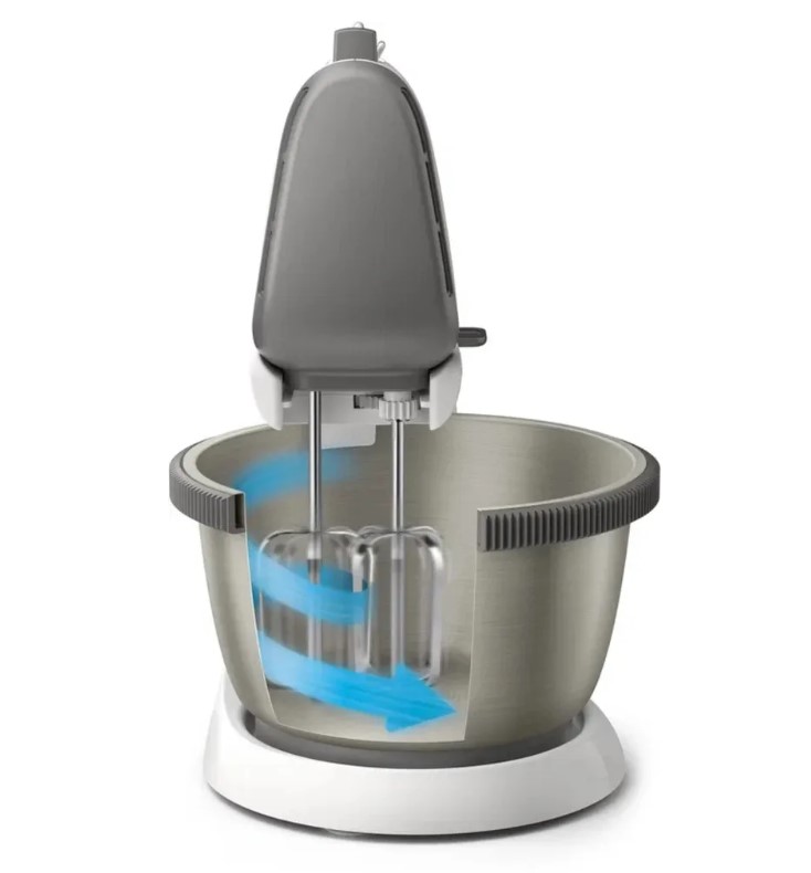 Мощное, эффективное смешивание для пышных пирогов. До 25 % быстрее благодаря мощному мотору 450 Вт.