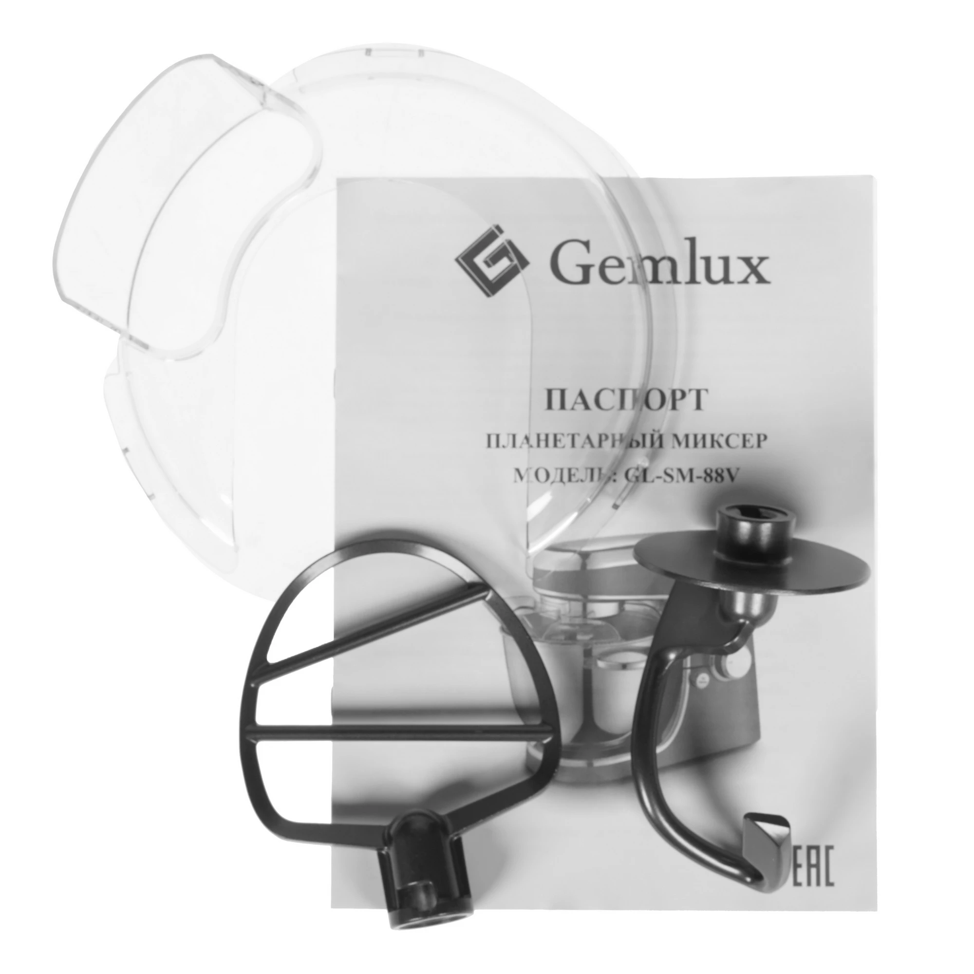 документация, защитная крышка, насадка-венчик, насадка-крюк, насадка для перемешивания, чаша