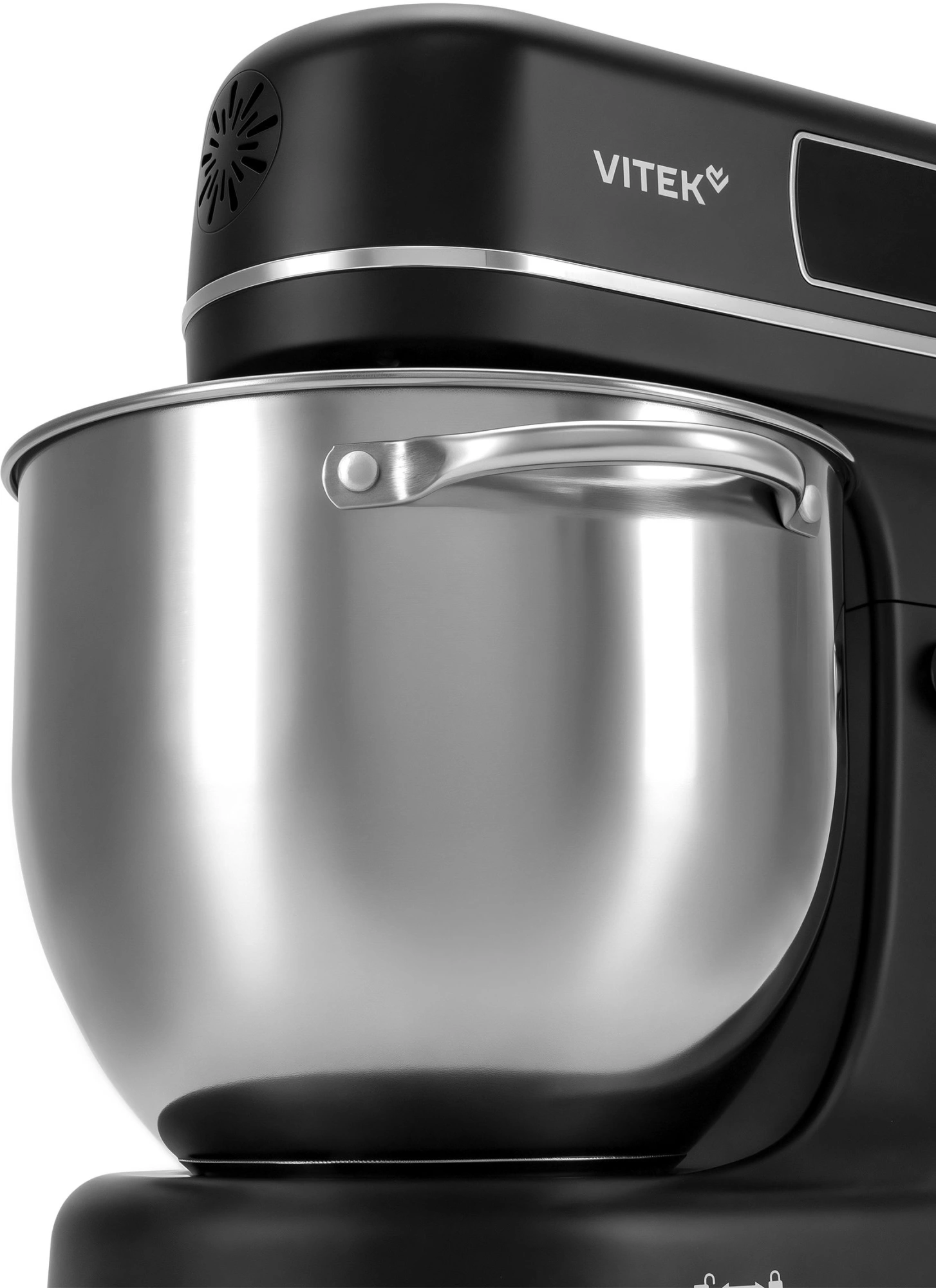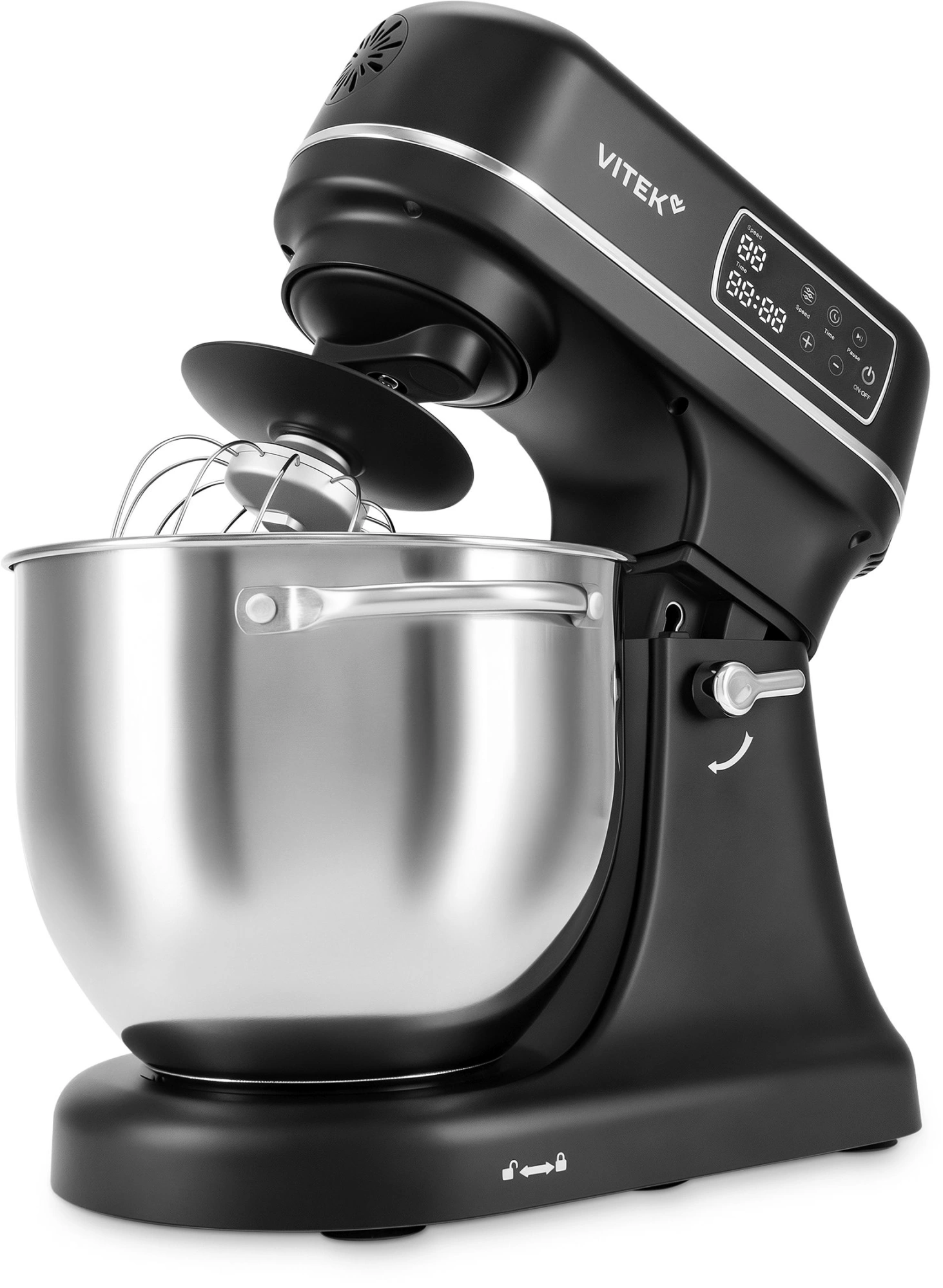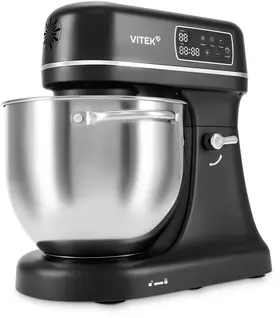 Миксер, чаша, защитный обод, насадка-венчик, насадка-крюк, насадка-лопатка, кулинарная силиконовая лопатка, книга рецептов, инструкция