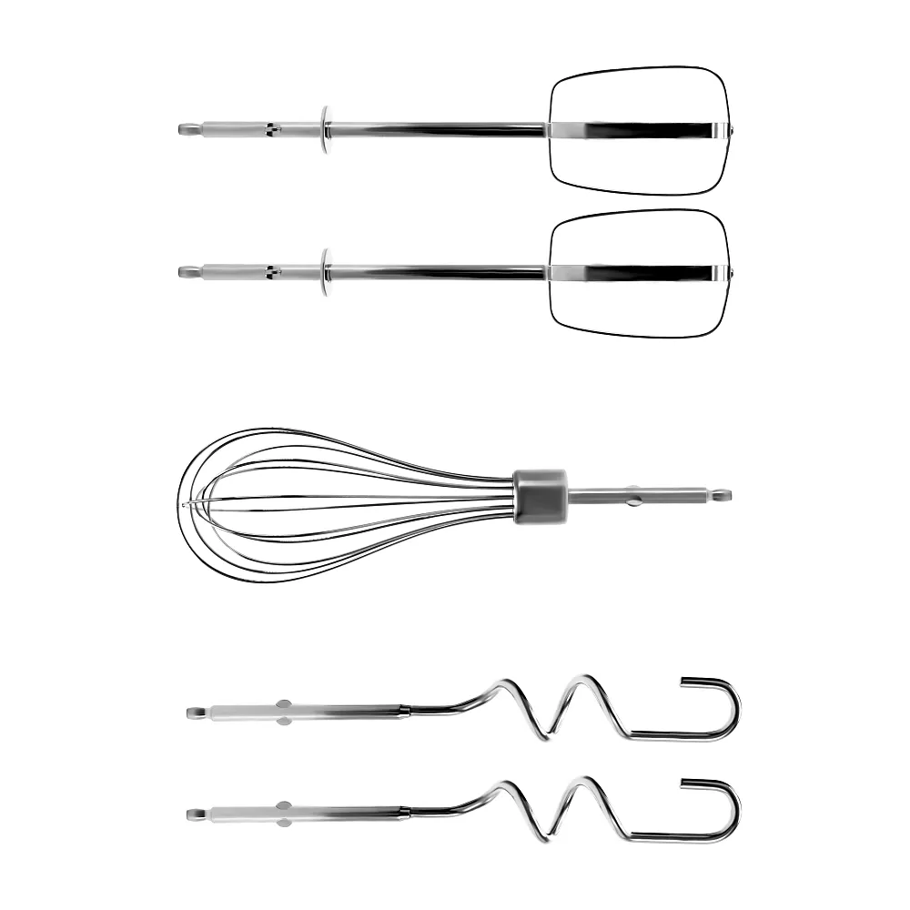 крюк для теста (2 шт), насадка для смешивания, насадка для взбивания (2 шт)