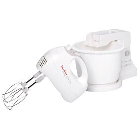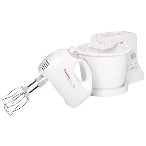 Стационарный миксер Moulinex HM 4121 снабжён вместительной пластиковой чашей-подставкой объёмом 2.5 литра. Во время работы она автоматически вращается, благодаря чему пюре или тесто получаются нежными и полностью однородными, без комочков. После смешивания ёмкость легко снимается, мыть её можно в посудомоечной машине.