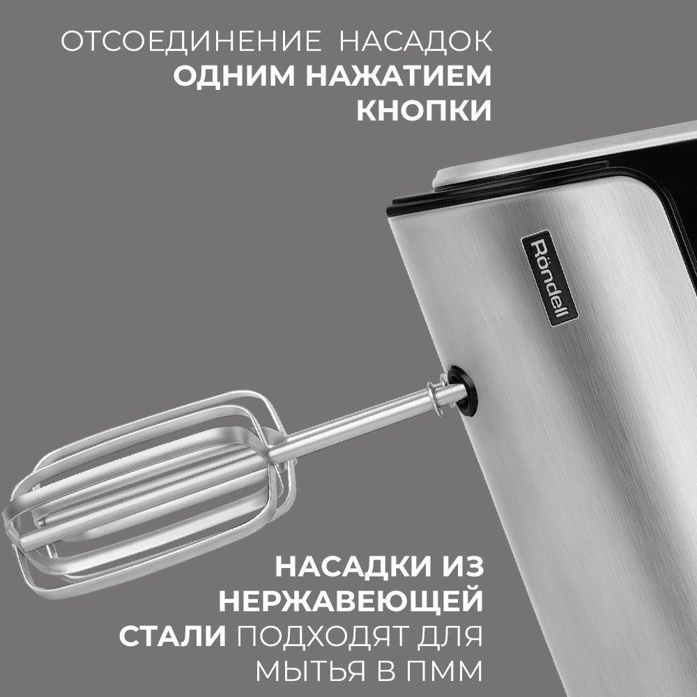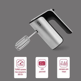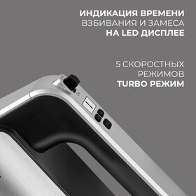 руководство по эксплуатации; насадка венчики для взбивания - 2 шт; насадка крюки для замешивания теста - 2 шт