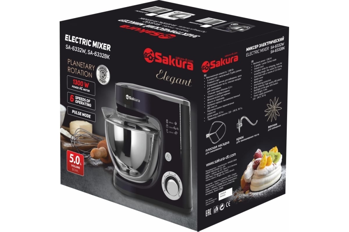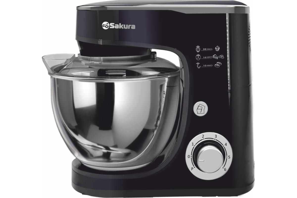 В комплекте 3 насадки (объемный венчик, плоский венчик и крюк), есть подсветка кнопки. Шнур 0,95 м.