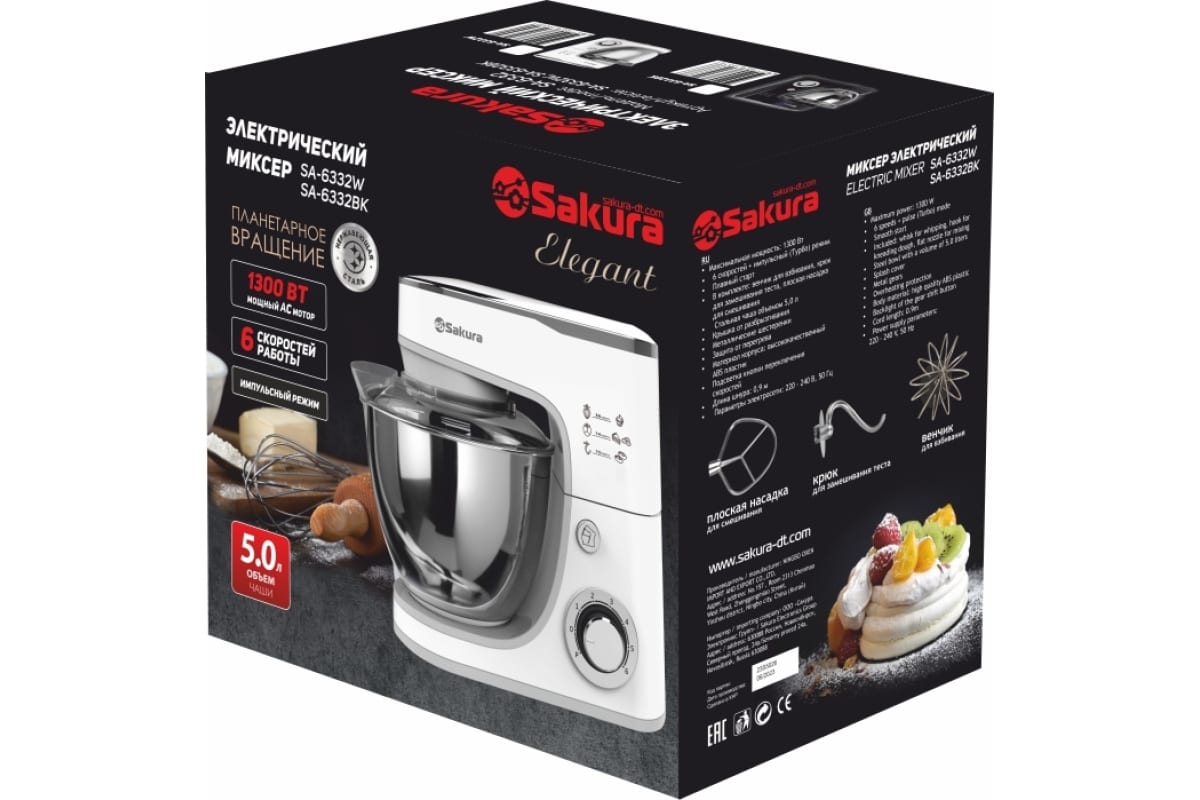 В комплекте 3 насадки (объемный венчик, плоский венчик и крюк), есть подсветка кнопки. Шнур 0,95 м.