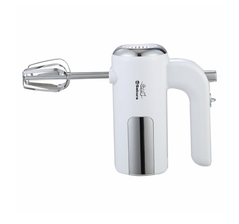 Миксер ручной, 400 Вт, ручной, 5 скоростей работы, корпус из АБС пластика, насадки из нерж.стали (венчики для взбивания, крюки для замешивания теста), защита от перегрева.