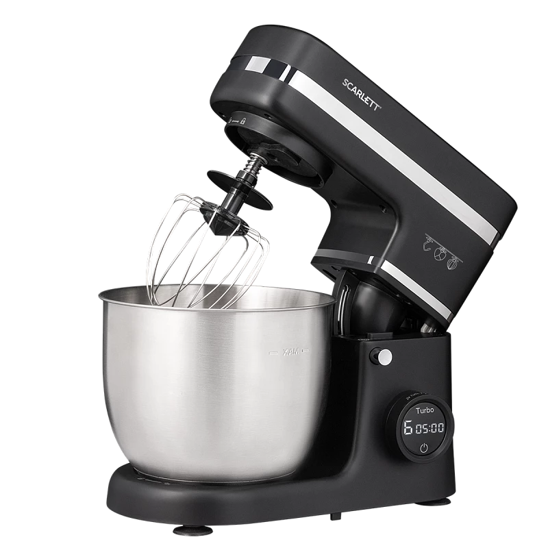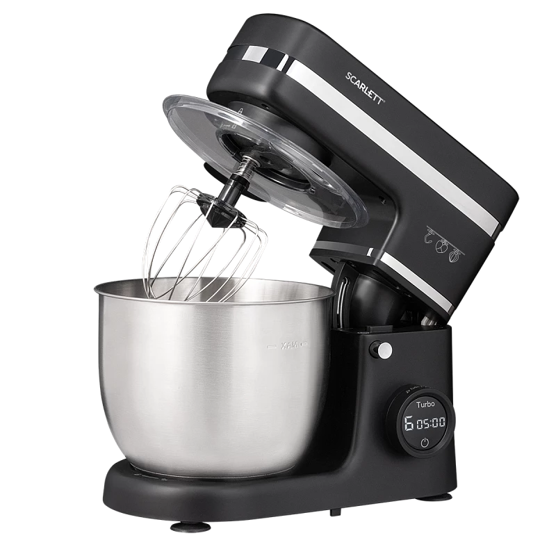 Насадки: Венчик для взбивания, крюк для замешивания теста, лопатка для смешивания