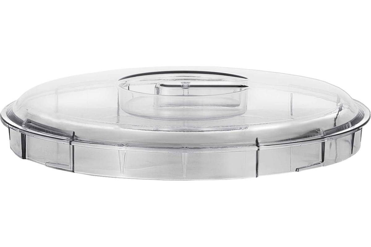 Прибор оснащен чашей емкостью 5 литров. Чаша изготовлена из нержавеющей стали, она прочная, и в ней можно смешивать даже горячие ингредиенты. Чаша закрепляется на моторном блоке и укомплектована защитной крышкой. Крышка предотвращает разбрызгивание ингредиентов при замешивании.