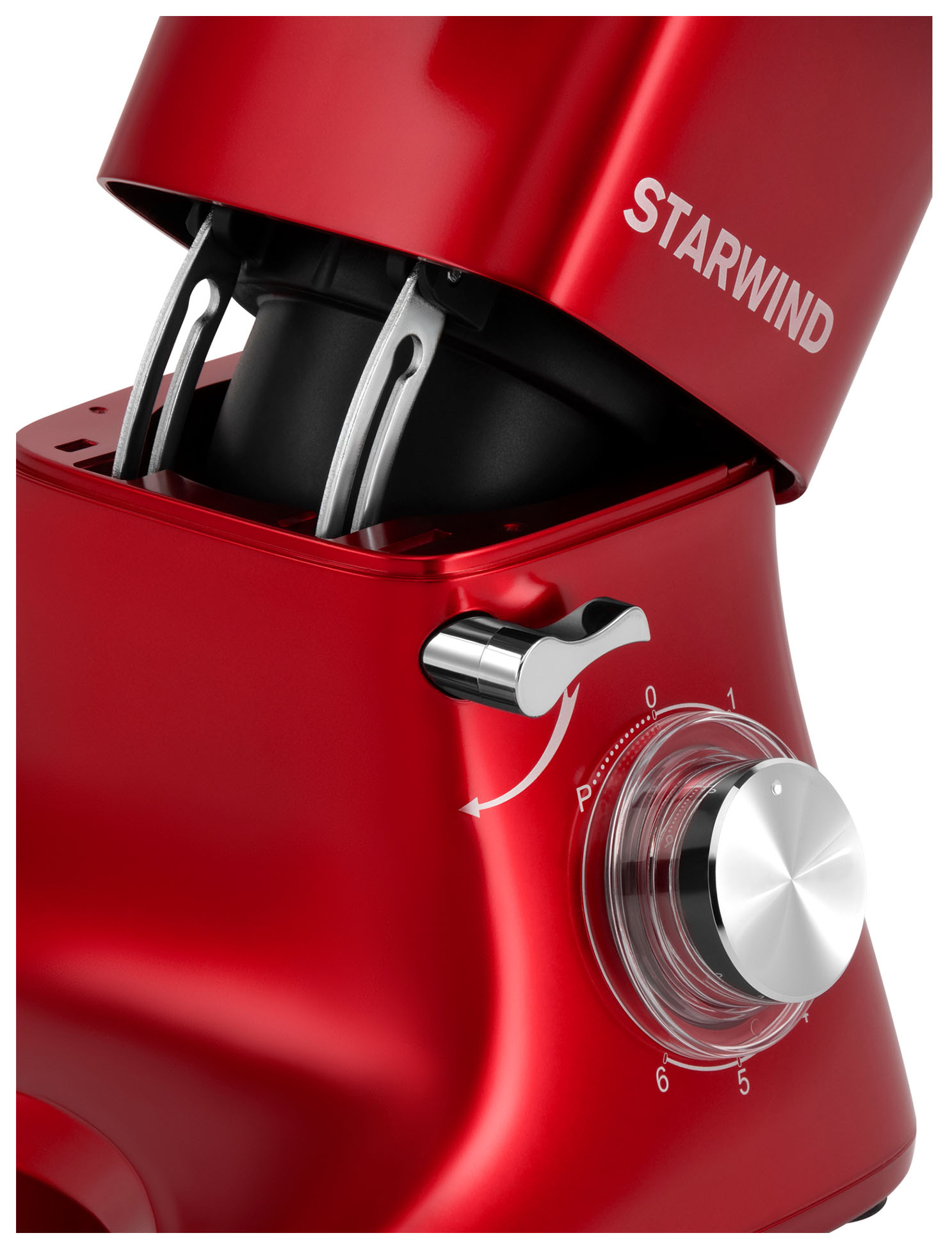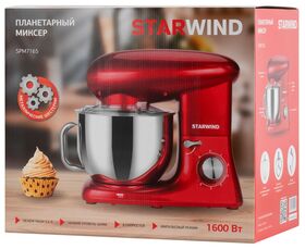 Миксер планетарный StarWind SPM7165 представляет собой устройство, которое по внешнему виду и функционалу схоже со сложной кухонной машиной. Бытовая техника справится с замешиванием дрожжевого теста, взбиванием и смешиванием всевозможных ингредиентов. Прибор незаменим для тех хозяек, которые любят часто готовить. Мощность бытового прибора составляет порядка 1600 Ватт, а объем резервуара для ингредиентов – 5,5 литра. Опционально предусмотрено шесть режимов работы, поэтому подобрать вариант с учетом специфики блюда не составит особого труда. Миксер достаточно мощный, изготовлен из пластика и нержавеющей стали. Корпус яркого красного цвета сразу привлечет к себе внимание гостей.