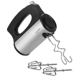 двойной набор насадок: два венчика для взбивания яиц и кремов, две насадки для размешивания тяжелого теста, смешивания жидкостей, замешивания теста, приготовления пюре, взбивания сливок и белков.