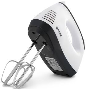 Легкий и компактный миксер поможет быстро взбить и смешать продукты. Оснащен пятью скоростными режимами и специальным контейнером для хранения насадок.
