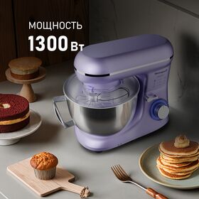 Электрический планетарный миксер от Weissgauff, обладающий впечатляющей мощностью 1300 Вт, оснащенный набором цельнометаллических насадок для теста и для смешивания, венчиком для взбивания, а также удобной чашей с крышкой - это незаменимый помощник на вашей кухне, который поможет вам воплотить в реальность самые смелые кулинарные идеи!