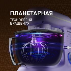 Планетарная технология вращения - обеспечит одновременное движение насадки не только вокруг своей оси, но и по внутренней окружности рабочей зоны чаши, выводя понимание того, насколько результативным в работе может быть кухонный миксер, на новый уровень!