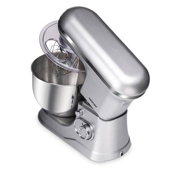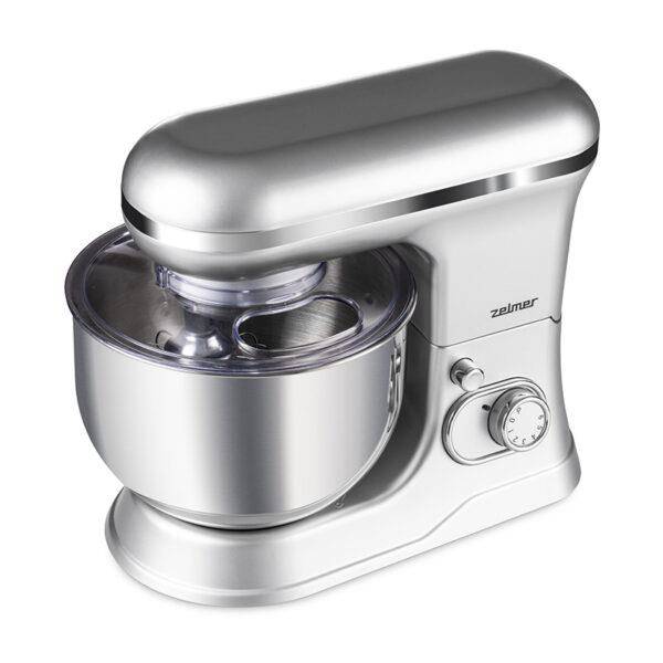 Планетарный миксер Zelmer ZKR1360, крышка для защиты от брызг, насадка-сбивалка, насадка-мешалка, крюк для замеса теста, пластиковая чаша 4,5 л, чаша из нержавеющей стали 5 л, набор для мороженого