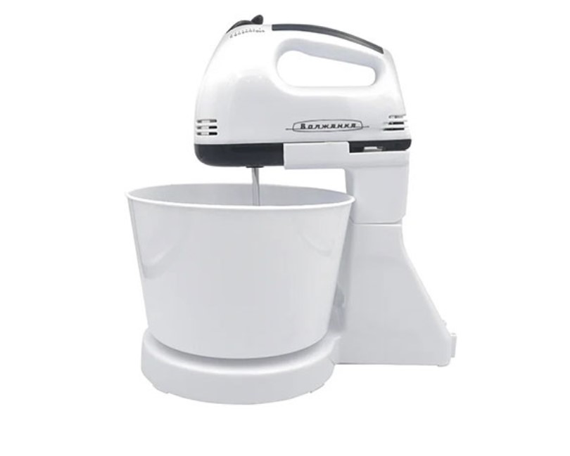 Мощный и удобный миксер Волжанка поможет вам в приготовлении различных блюд, он позволит быстро замешать тяжелое тесто или взбить яйца и крем.