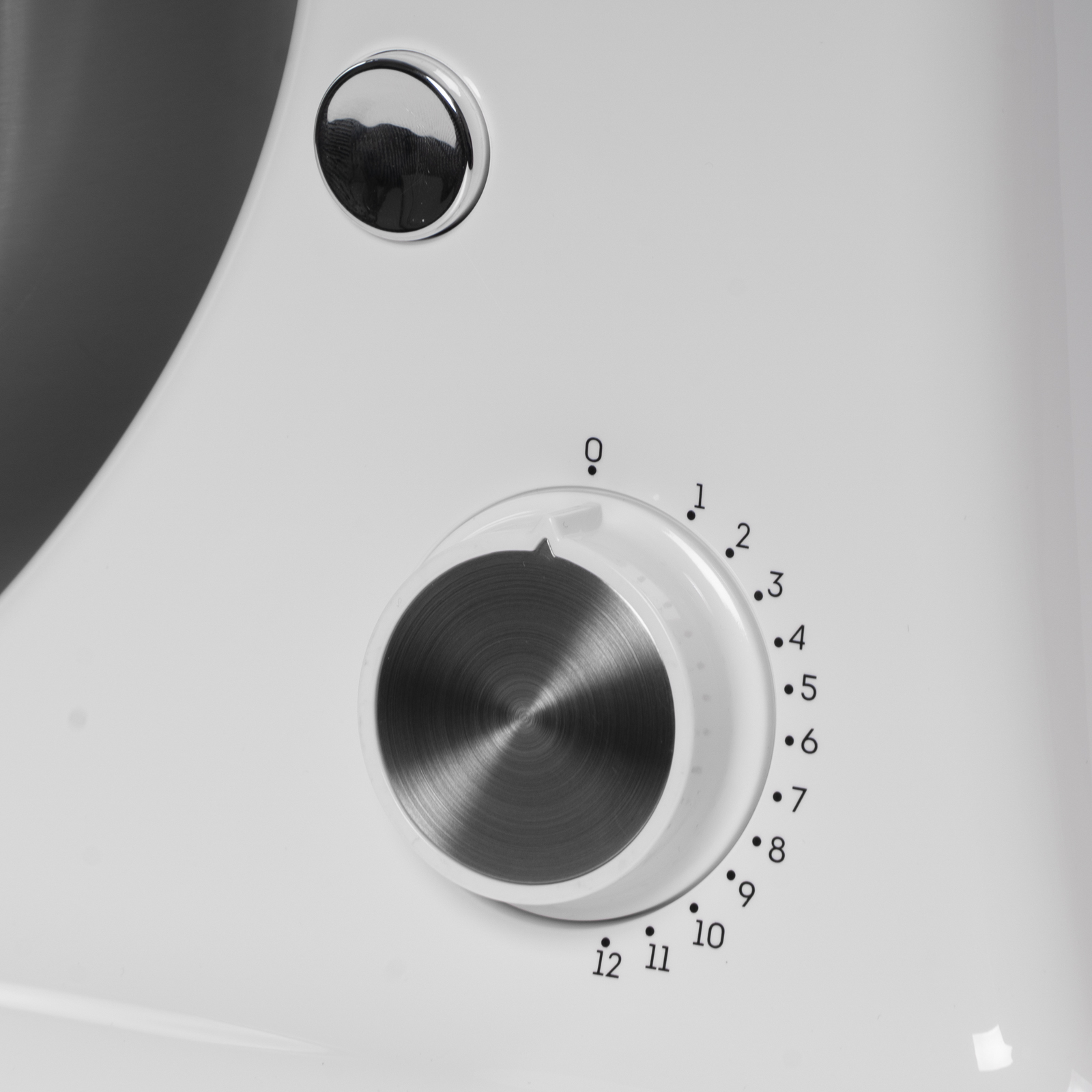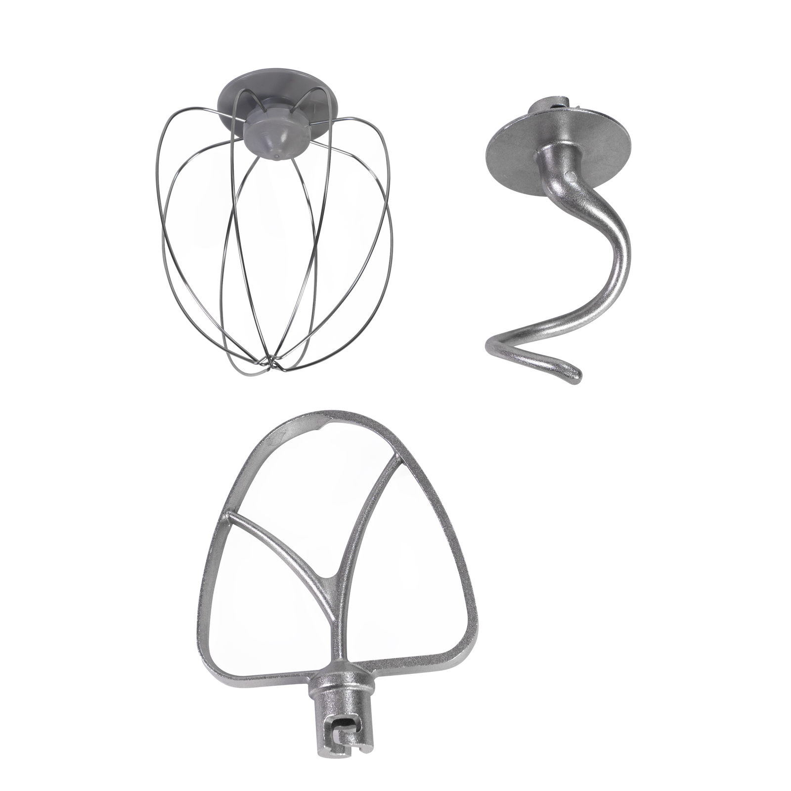 Насадки: венчик для взбивания - из нержавеющей стали 18/10 / для перемешивания ингредиентов - из литого алюминия / для замешивания теста - из литого алюминия