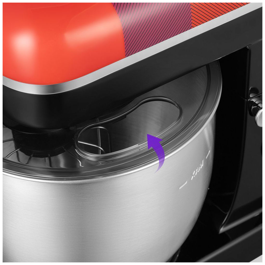 В металлической чаше можно смешивать даже горячие ингредиенты. Съёмная крышка предотвращает разбрызгивание ингредиентов при взбивании. Через загрузочное отверстие можно добавлять ингредиенты прямо во время работы миксера.